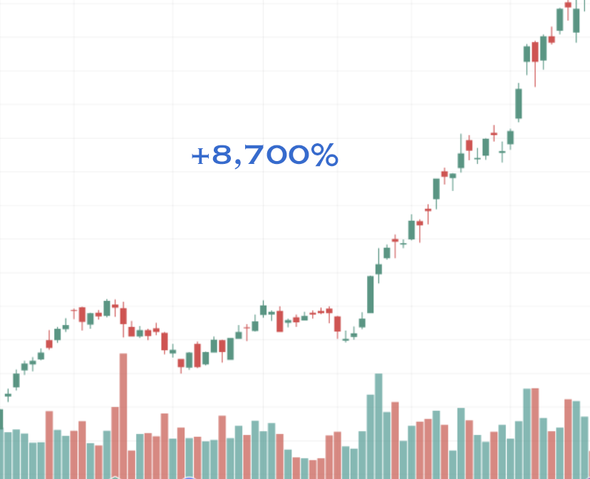 Den sidste aktie, vores analyseteam skrev om, steg fra 1 euro til 88 euro på sit højeste niveau sidste år – et afkast på 8.700%.